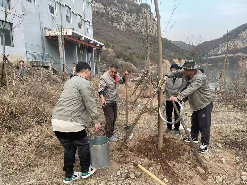 大家分工協(xié)作,相互配合,搬運(yùn)樹苗,兩三人一組,挖穴、種樹、培土、壓實(shí)、澆水,栽下一顆又顆新綠。這次植樹工作進(jìn)一步提高了公司全體員工植綠、護(hù)綠、愛綠、興綠的保護(hù)生態(tài)環(huán)境的責(zé)任意識。公司秉承“綠水青山就是金山銀山”的理念,本著建設(shè)“美麗大家園 幸福新泵站”的工作目標(biāo),踔厲奮發(fā)、勇毅前行,為水務(wù)公司更美好的明天貢獻(xiàn)力量和擔(dān)當(dāng)。
