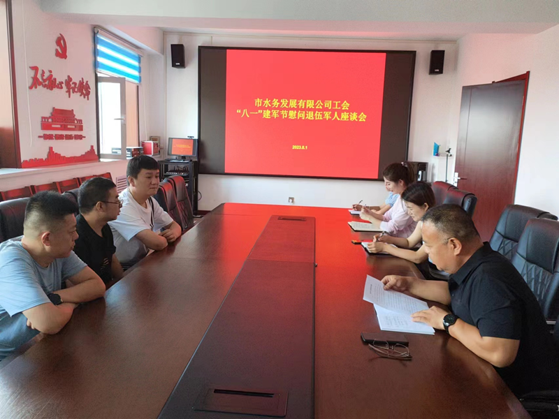 8月1日下午,在中國人民解放軍建軍96周年之際,水務公司組織召開退伍軍人座談會,工會主席李利攜工會成員代表公司和單位的退伍軍人進行了親切交流。