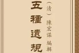 《五種遺規(guī)》,清陳宏謀輯。清代社會(huì)教育和蒙童教育教材,清末中學(xué)堂修身科教材。輯者有感于世上多有弊端,遂于公務(wù)之余,采錄前人關(guān)于養(yǎng)性、修身、治家、為官、處世、教育等方面的著述事跡,分門別類輯為遺規(guī)五種:《養(yǎng)正遺規(guī)》、《教女遺規(guī)》、《訓(xùn)俗遺規(guī)》、《從政遺規(guī)》和《在官法戒錄》,總稱《五種遺規(guī)》。